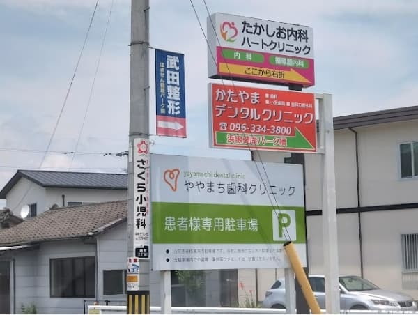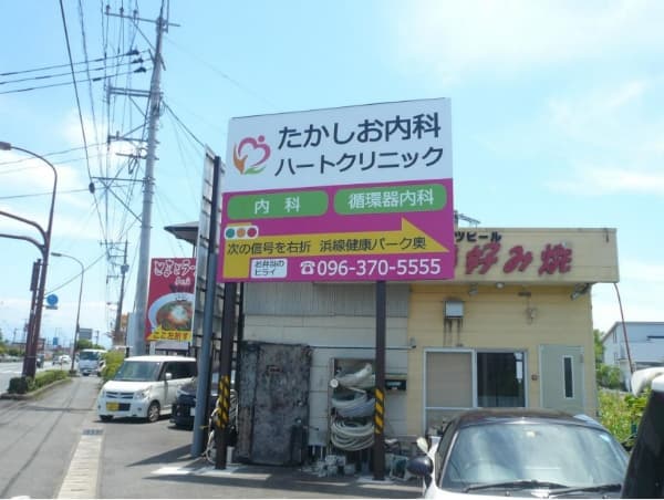 東バイパスを越えて浜線バイパスを嘉島町方面に南下すると右手にクリニックの看板が見える交差点があり、こちらを直進します。